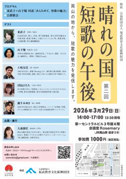 「晴れの国 短歌の午後」【第二回】が下記のとおり開催されます。ぜひお申し込みください。