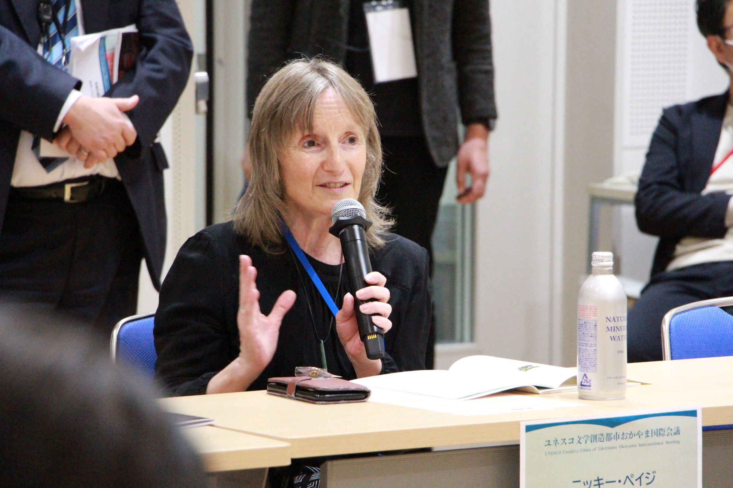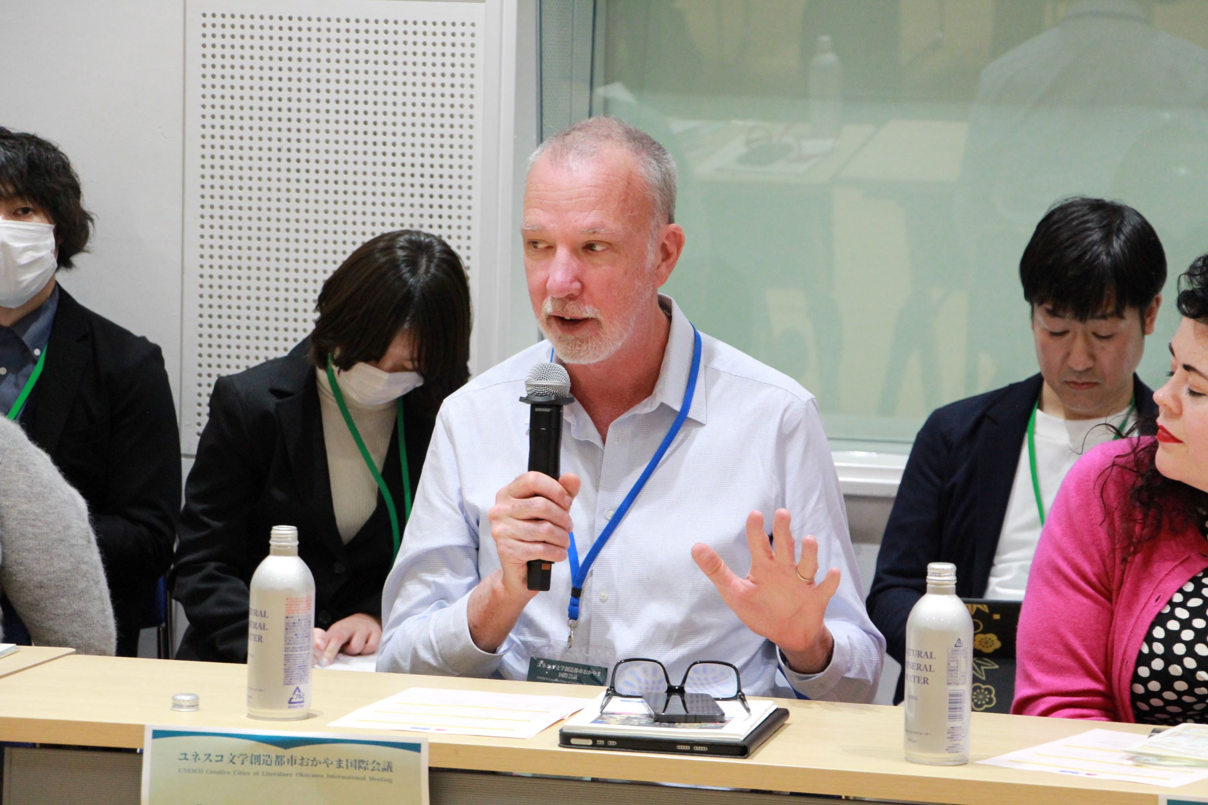 文学創造都市担当者会議は、6都市のゲスト、岡山市の担当者、日本国内のユネスコ創造都市ネットワーク加盟都市の創造都市の参加者が出席しました。参加者による自己紹介の後、岡山市より「文学による心豊かなまちづくり」"Cultivating Minds through Literature"と題して、文学創造都市おかやまの特長や活動内容について紹介しました。