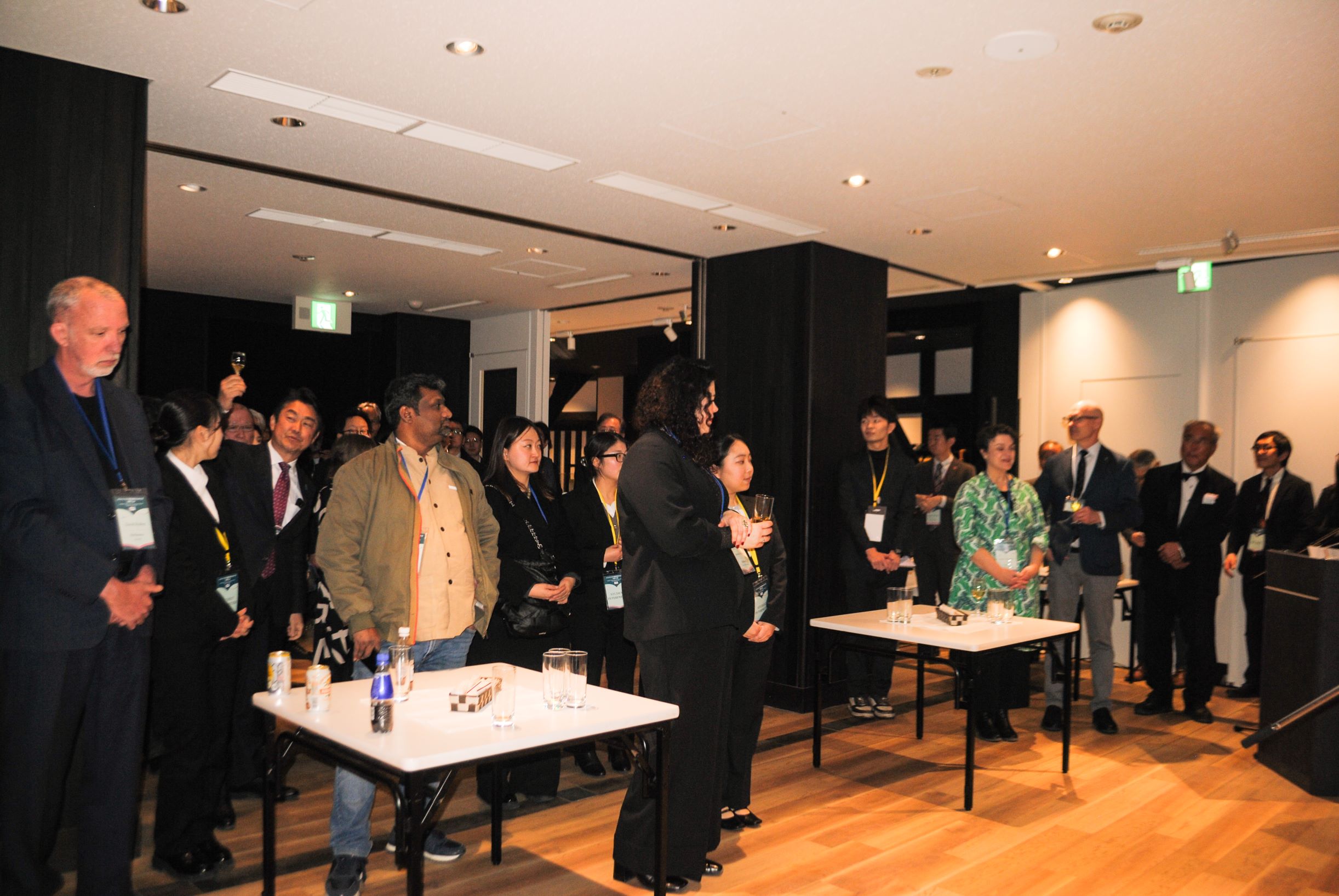 岡山城天守閣で海外ゲストの歓迎レセプションを開催しました。約50名が参加し、岡山市の大森市長、岡山市議会の田口議長の挨拶、文学創造都市岡山推進会議の山川会長の乾杯の後、海外ゲストが一人ずつ自己紹介と挨拶をされました。筝曲三上社による琴の演奏、おもてなし武将隊による岡山城の紹介等もあり、あたたかい雰囲気でゲストをお迎えすることができました。