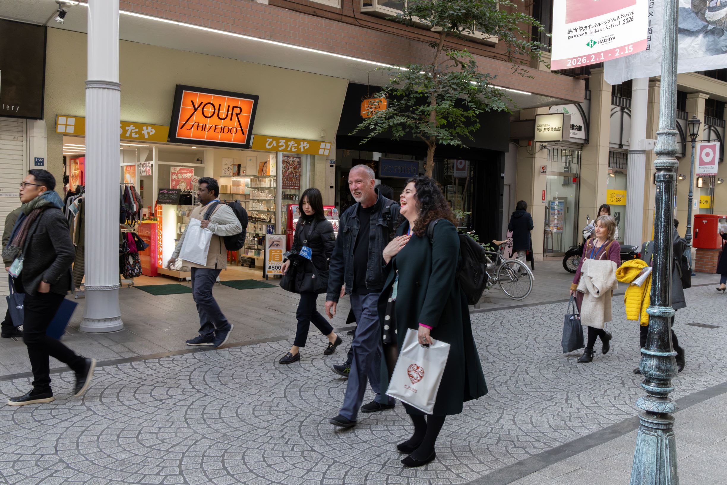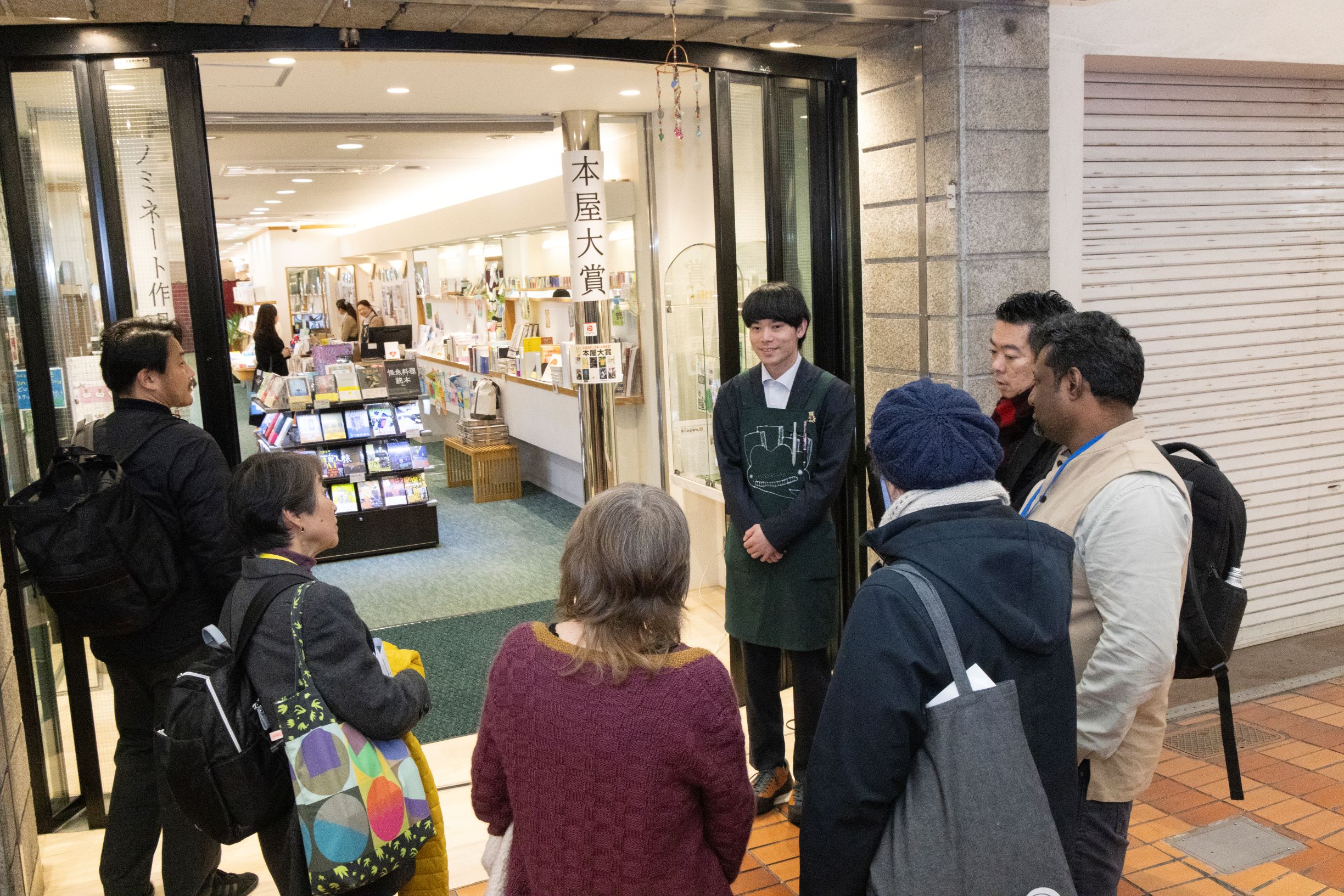 続いての表町商店街のエクスカーションでは、ゲストは丸善、正夢書房等の表町ブックスクエアなどの書店などに立ち寄ったほか、商店街全体を歩き、商店街の成り立ち、歴史などについても説明を受けました。