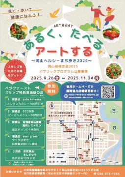 その開催期間に合わせ、アートと健康をテーマに、アートスポットとベジ・ファーストOKAYAMAプロジェクト協力店をめぐるスタンプラリーを実施しています。