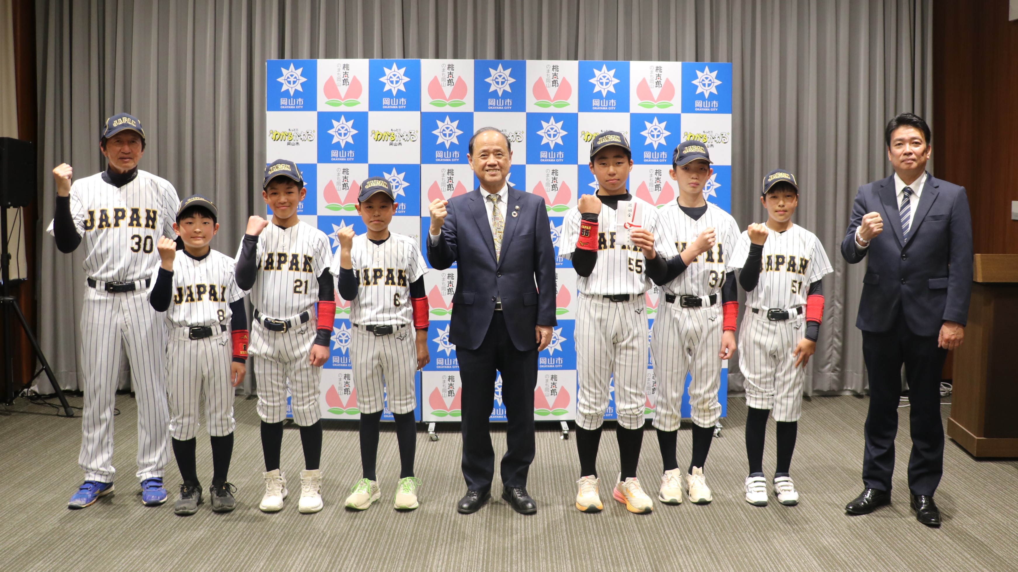 「日本小学生国際親善ソフトボール団」オーストラリア遠征の代表に選出された岡山少年ソフトボールクラブの選手・関係者が大森市長を表敬訪問しました。