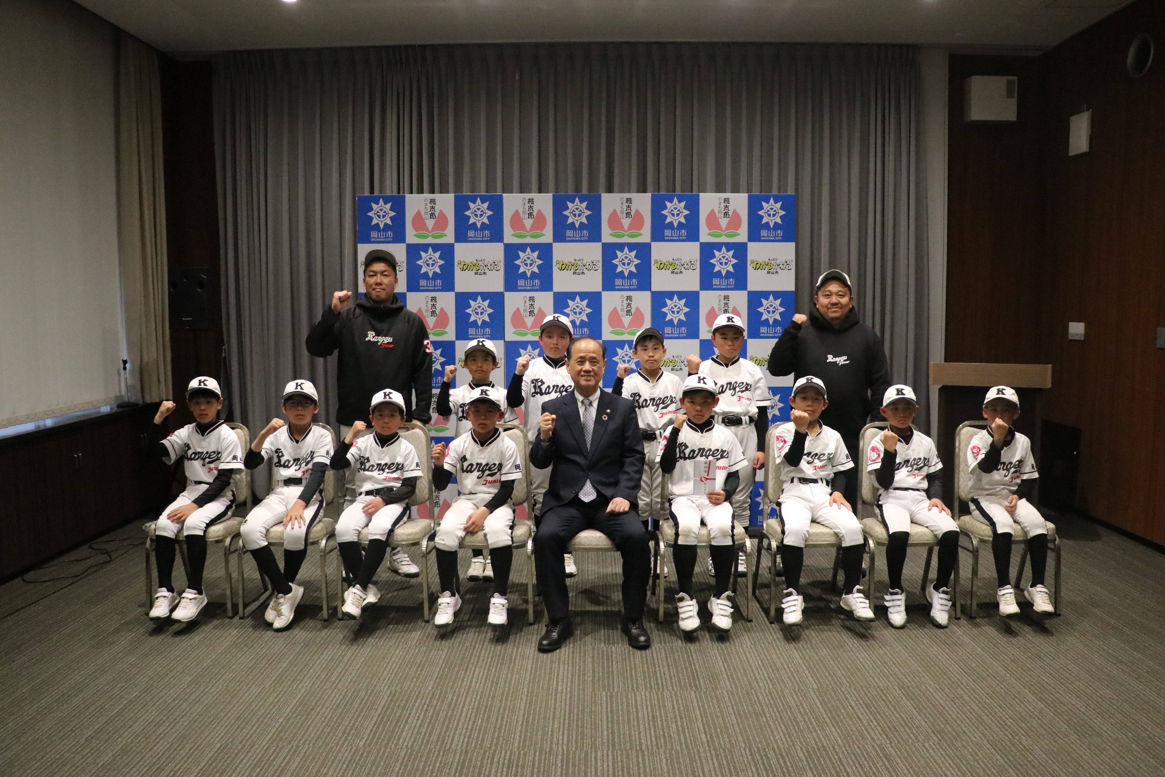 全国大会に出場する「岡輝レンジャーズJr軟式野球スポーツ少年団」の選手・関係者が岡山市長を訪問しました。