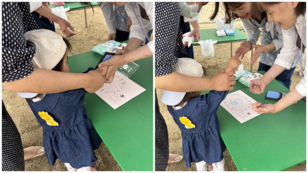 インクを手に塗ってもらって、ぺったん!