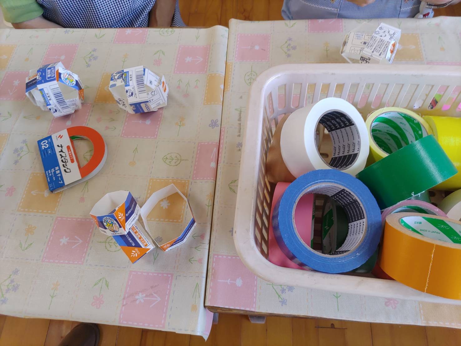 今日は「牛乳パックでオモチャを作ろう」です。