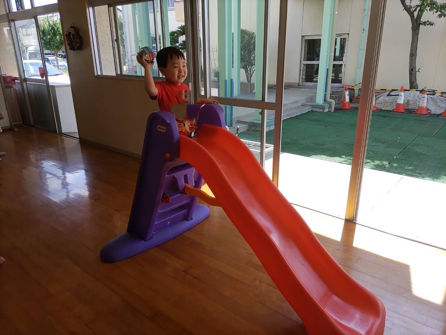 すべり台から「コロコロコロ・・・」