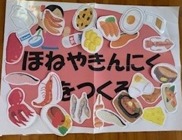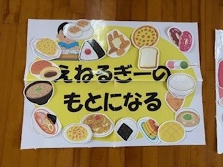 食べ物にはそれぞれの役割があります。かわいいイラストカードが並びます。