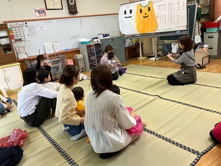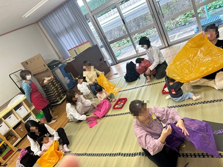 「変身ごっこ」の今日は、秋の歌から始まりました。