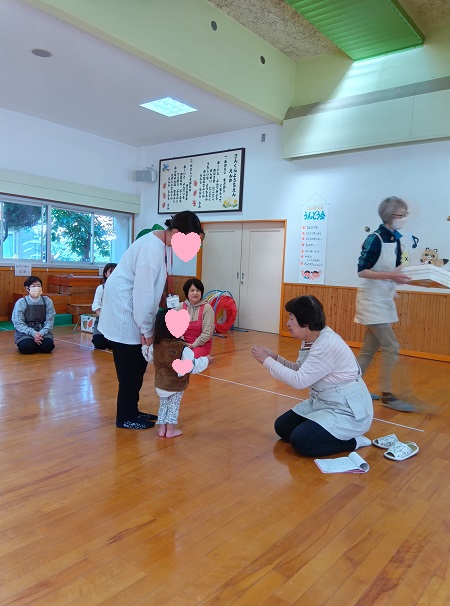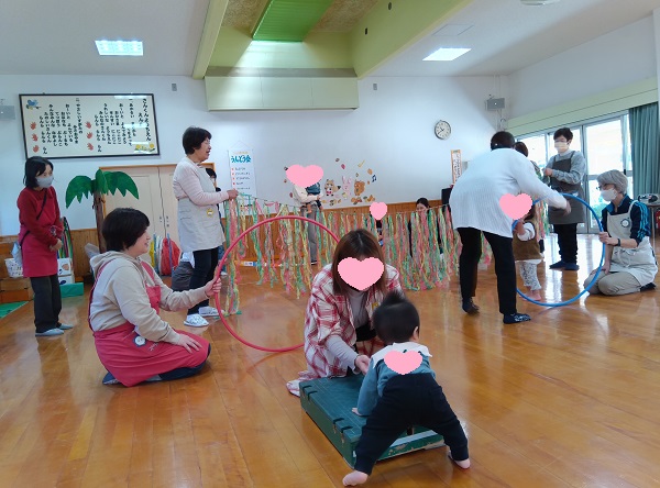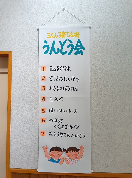 朝晩は寒いくらいになりましたね。日中はお外のお日様が温かく感じる今日の三勲子育て広場は、三勲幼稚園遊戯室をお借りして「運動会」です!