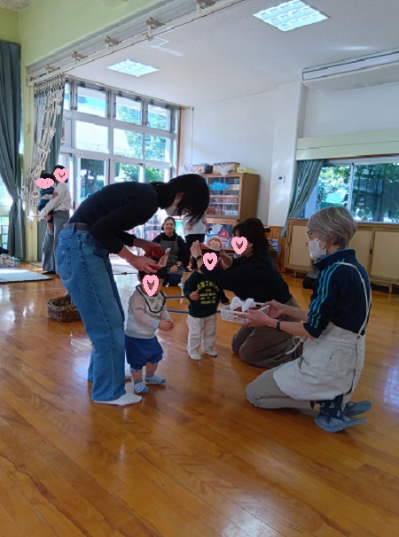 スタッフMさん手作りのプログラムに沿って、まずは「まぁるくなあれ」の歌を皆で歌って円形になり、ご挨拶。