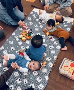 今日は赤ちゃんも多く、月齢の近い子同士でお家の方もお話が弾んでいました。