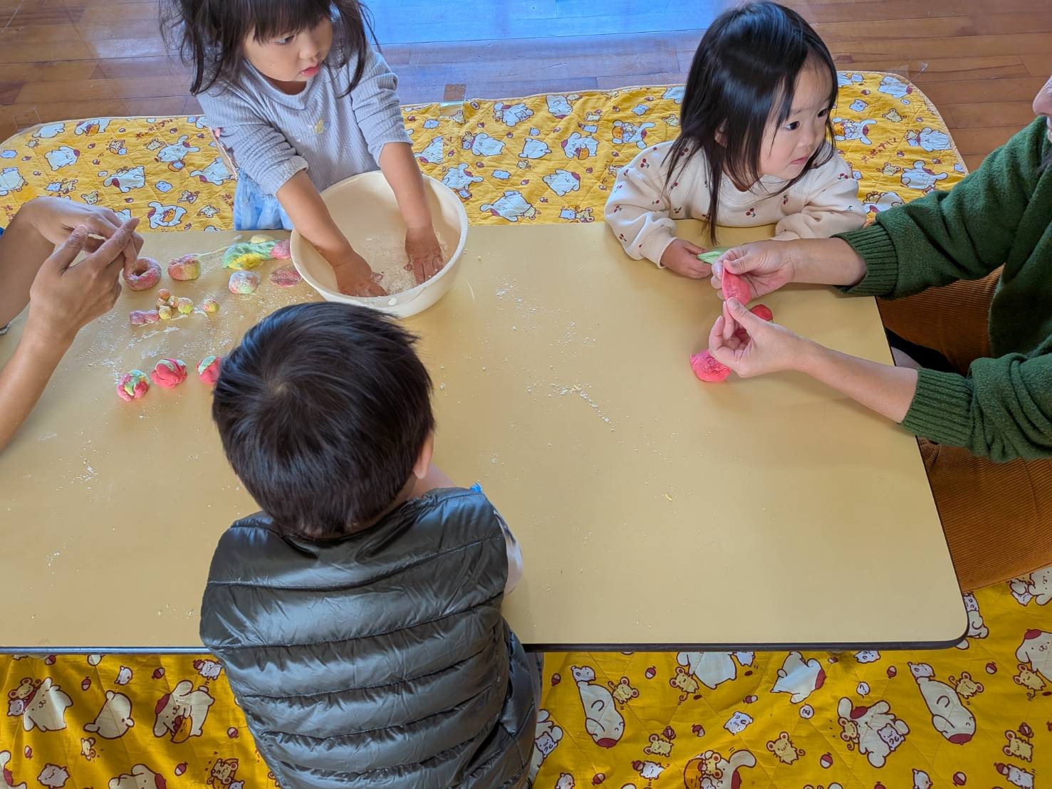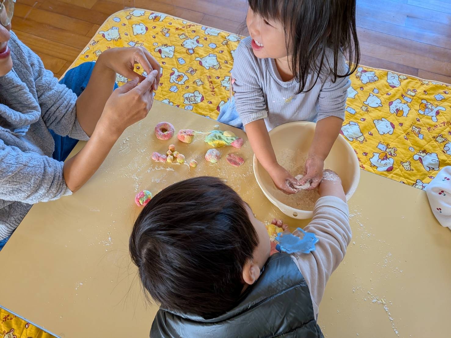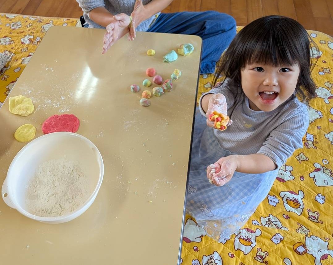 今日の広場は、「小麦粉粘土で遊ぼう」です。