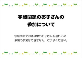 ◎学級閉鎖でお休み中のお子さんを連れての広場の参加はできません。