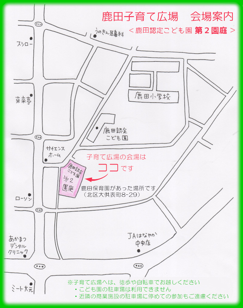 (こども園の駐車場は利用できません。近隣の商業施設への無断駐車も、ご遠慮ください)