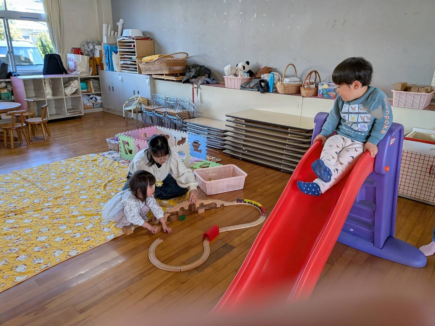 寒さの中でも、子どもたちは本当に“風の子”。その姿を見守りながら、保護者の方同士が自然に言葉を交わし合う様子もあり、広場がつながりの場になっていることを感じました。