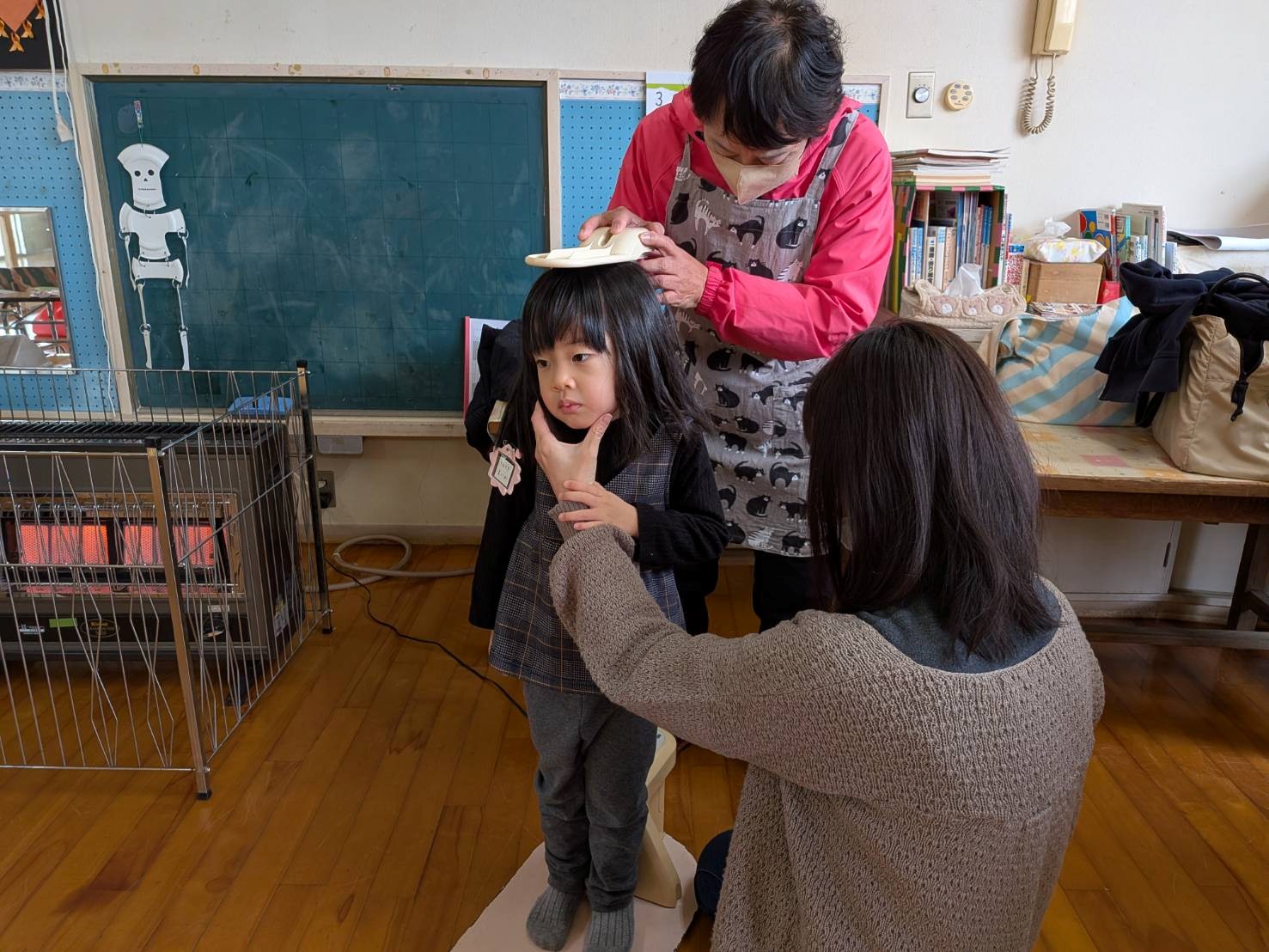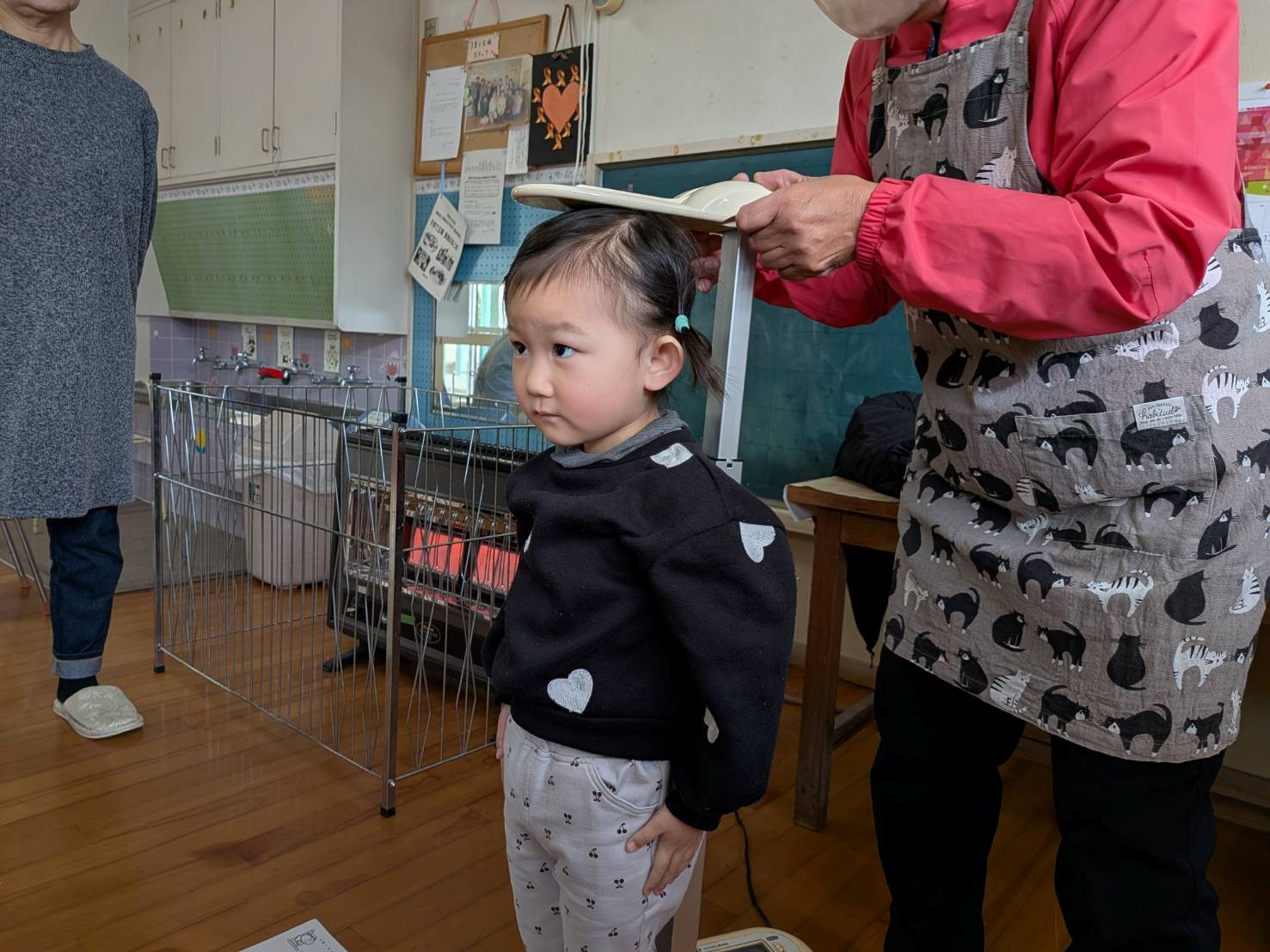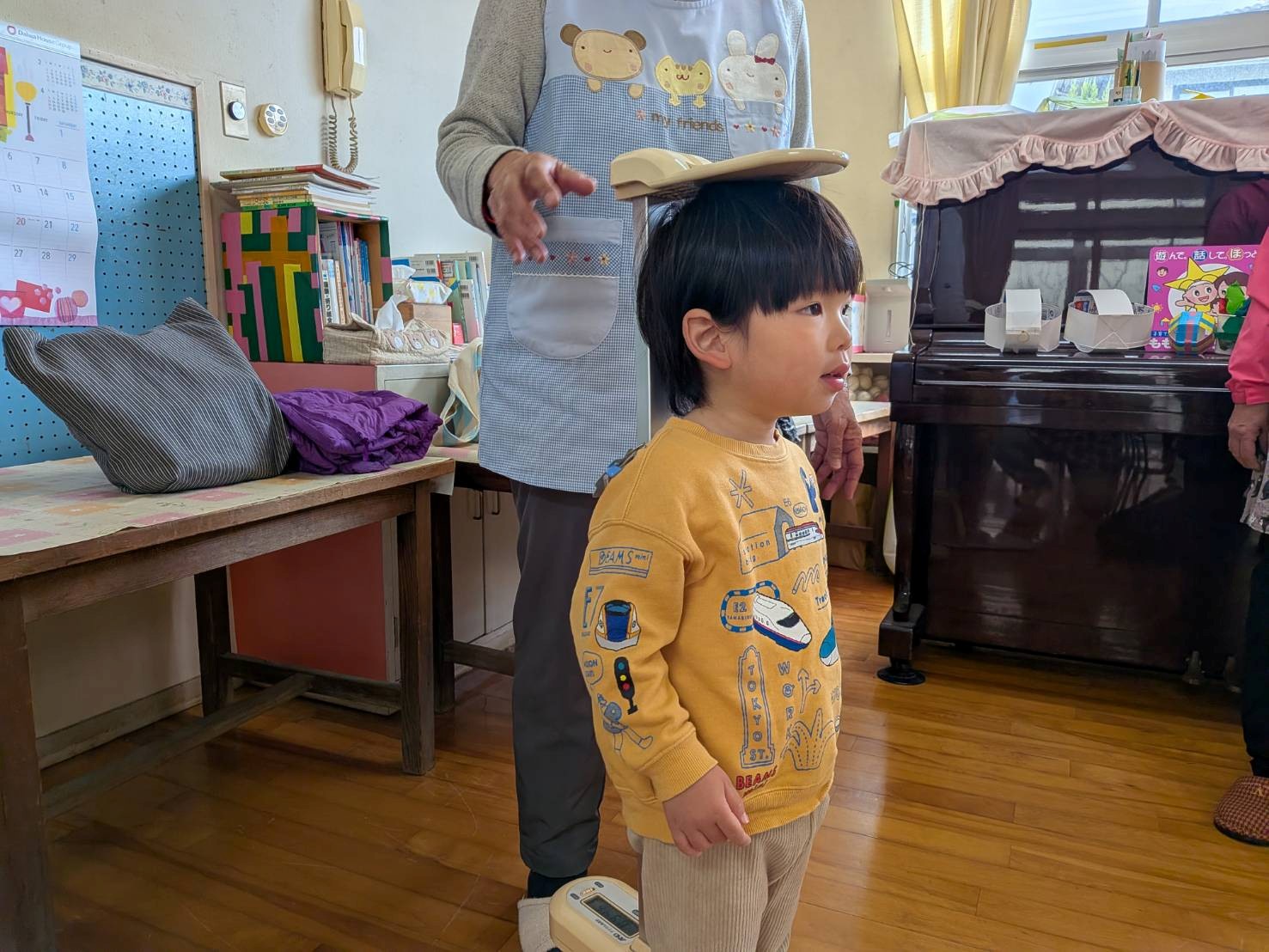 今日は、幼稚園から身長計と体重計を貸して頂いて、一人一人測りました。
