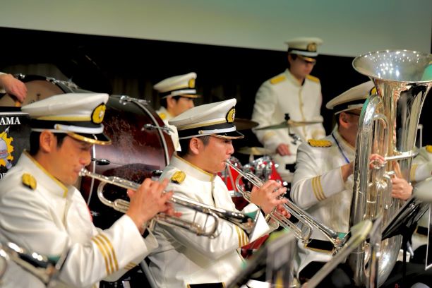 皆様こんにちは。岡山市消防音楽隊です。私たちは、「街角に防火のハーモニーを奏でよう」を合言葉に、音楽を通じて市民の方々へ防火・防災を呼びかける活動をしています。