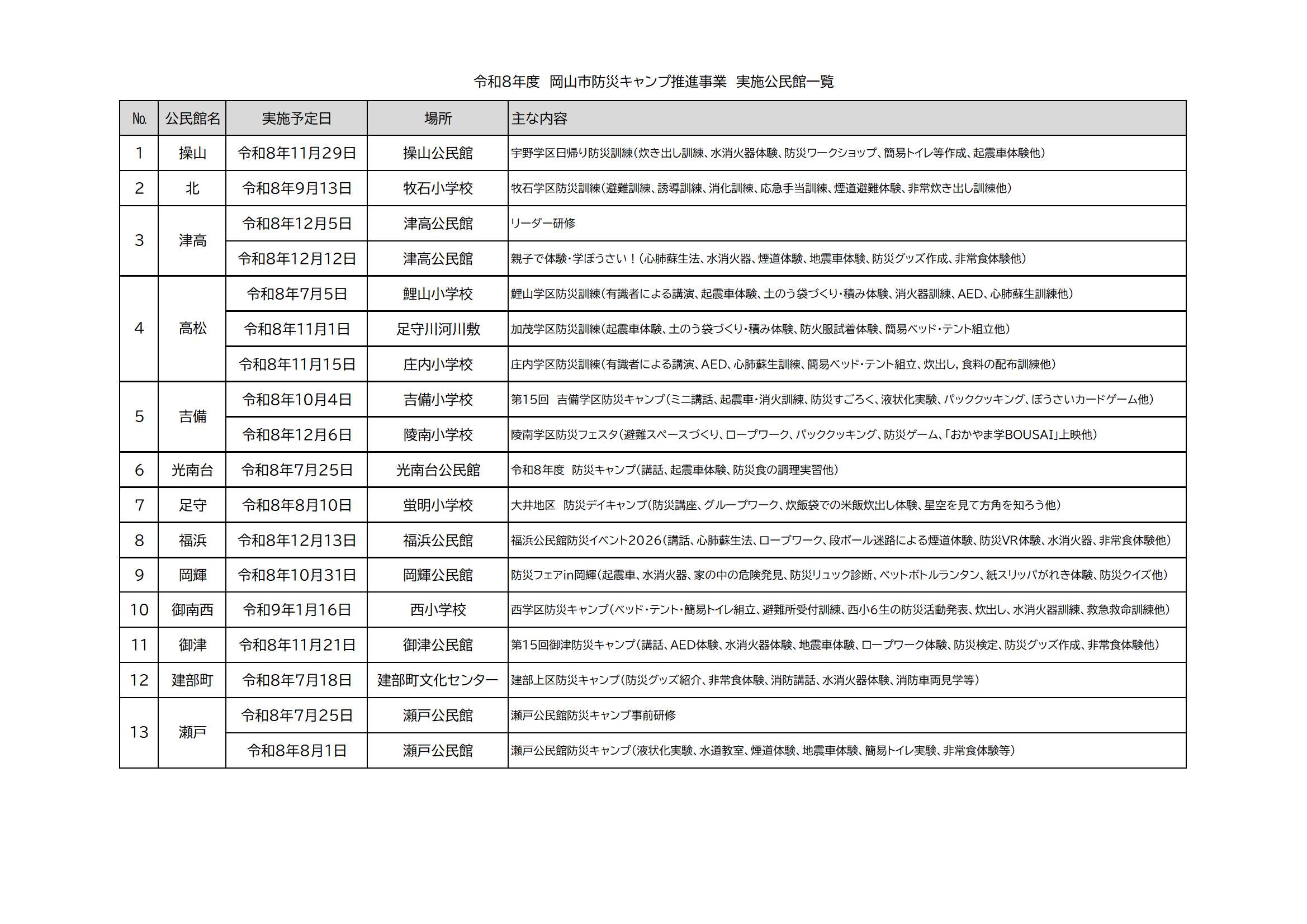 ※参加募集等は、各公民館(中学校区)内で直接実施しています。参加希望の場合も直接該当公民館へお尋ねください。