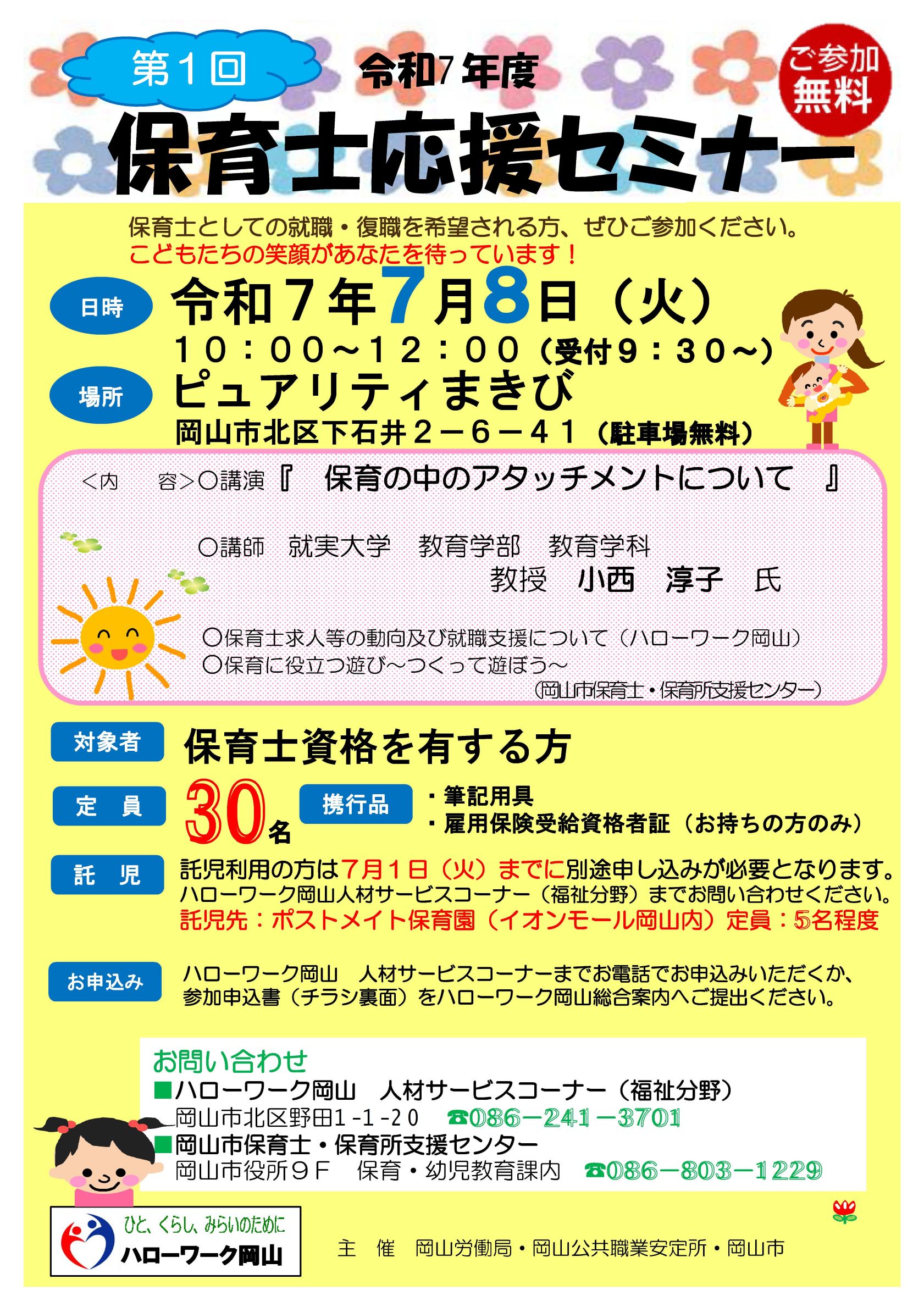 ・おかやまマザーズハローワーク TEL:086-222-2905