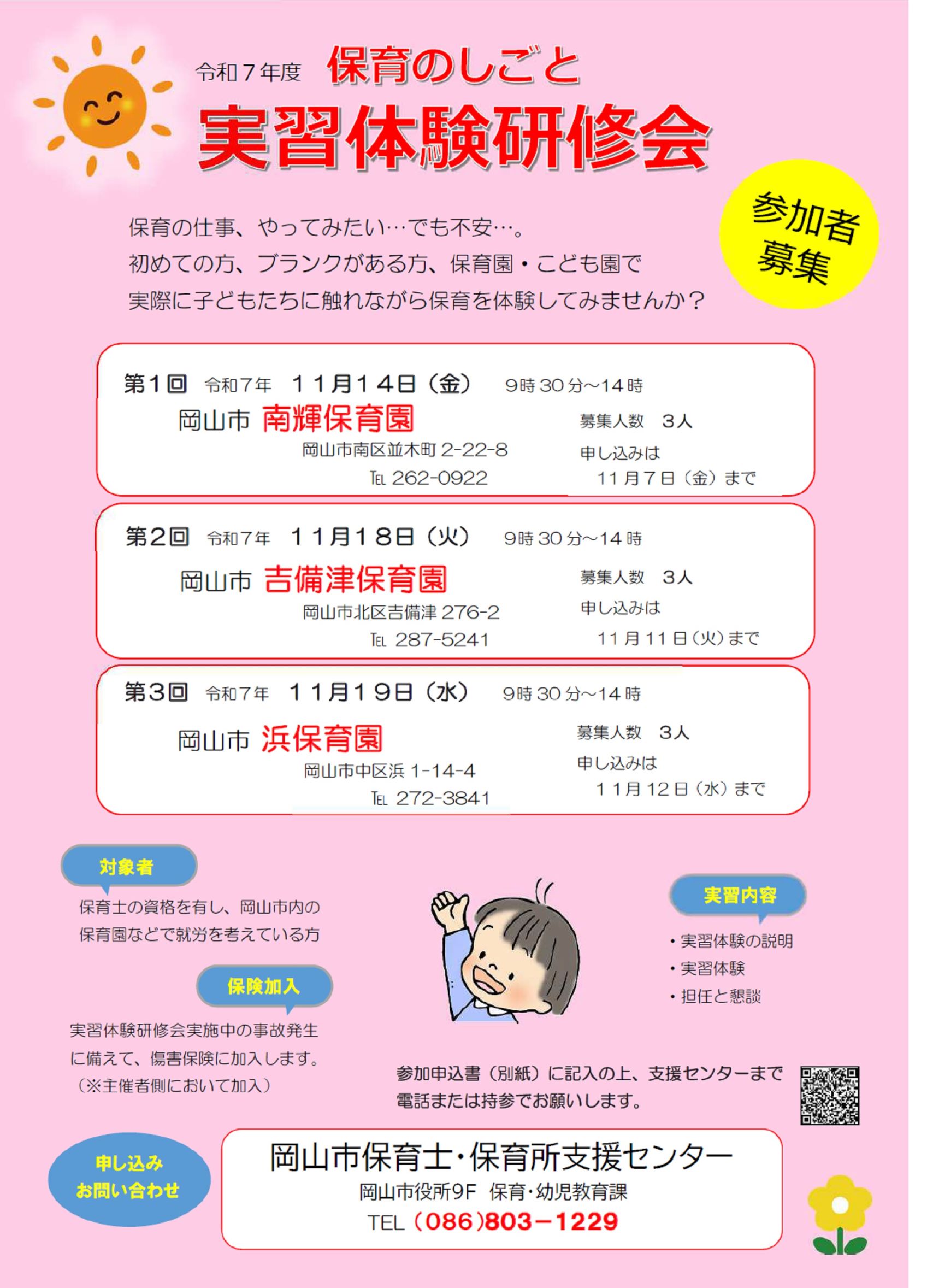 - 岡山市保育士・保育所支援センター TEL:086-803-1229