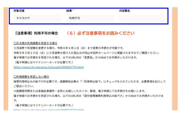 - 以下、「内定の場合」「利用不可の場合」をご覧ください。