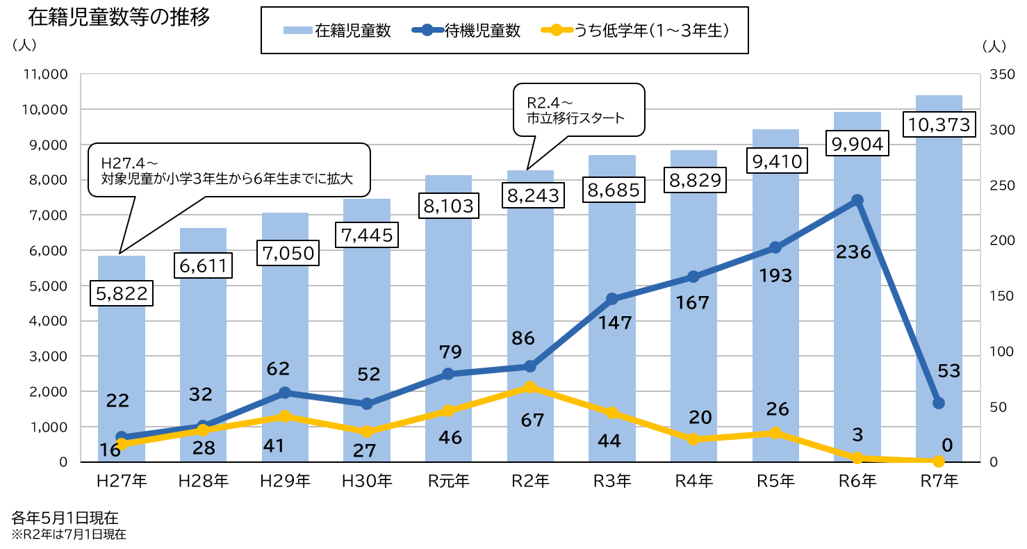 全国的に放課後児童クラブの利用者が増える中、岡山市ではニーズを見直し、令和9年度の待機児童ゼロを目指して、スピード感を持って全力で受け皿の確保に取り組んでいます。
