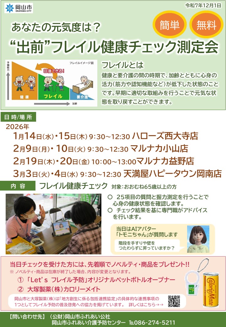 あなたの元気度は?“出前”フレイル健康チェック測定会を開催します!