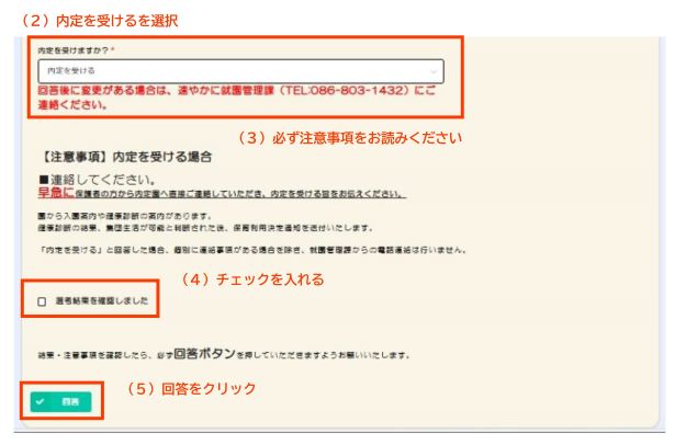 - 以下、「内定の場合」「利用不可の場合」をご覧ください。