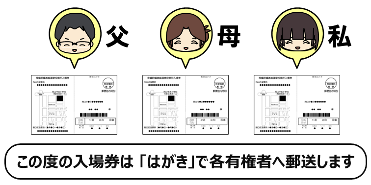 この度の衆議院議員総選挙の入場券は、少しでも早く発送できるように「はがき」にしました。