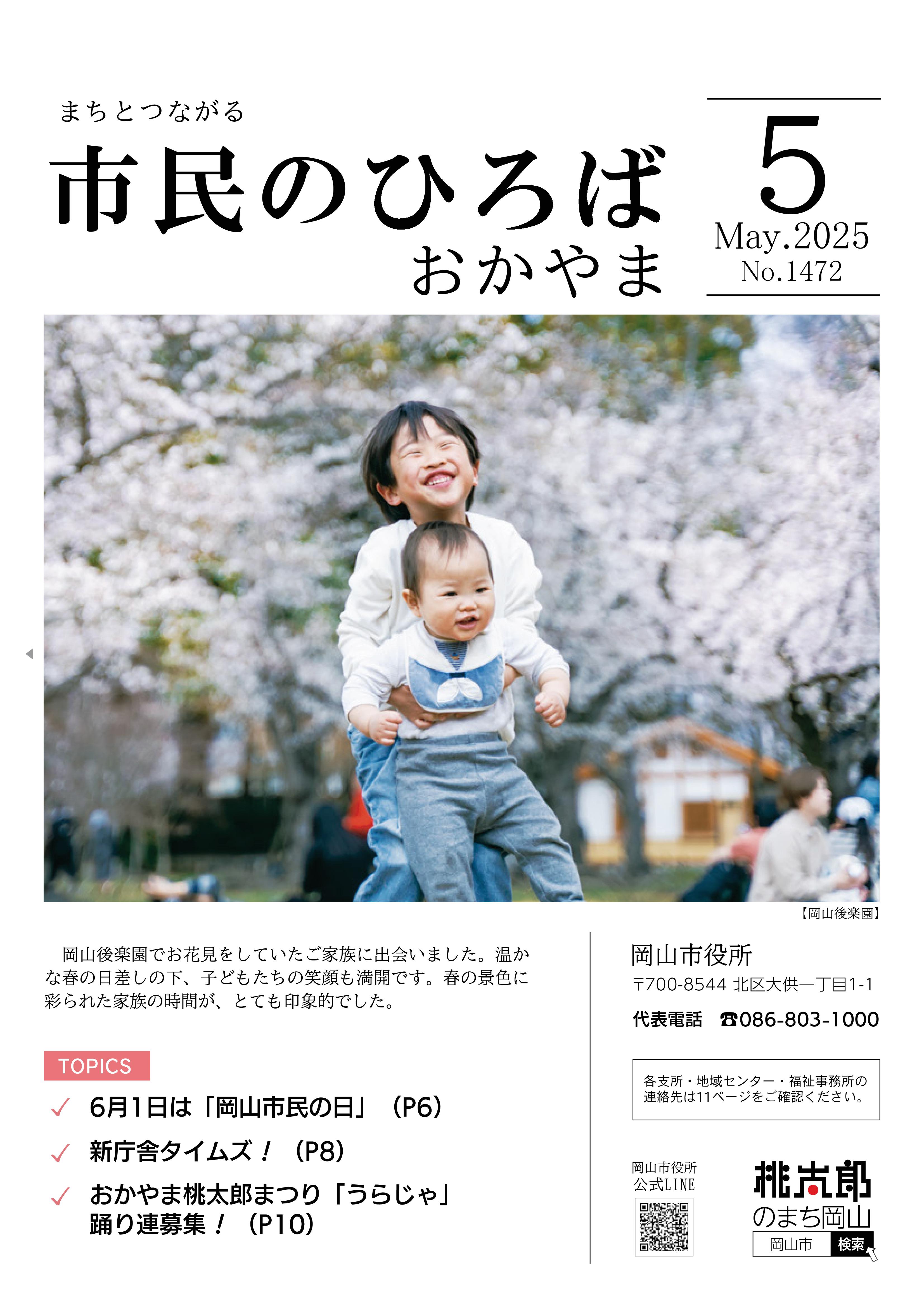 (補足)市民のひろばおかやまに掲載している内容(文章、写真、図、イラスト等)に関する著作権は、原則として岡山市の帰属とします。また、一部の画像等の著作権は、岡山市以外の原著作者の所有とします。