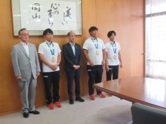 第12回ワールドゲームズで優勝した、男子ソフトボール競技日本代表の選手・関係者が大森雅夫岡山市長を表敬訪問しました。