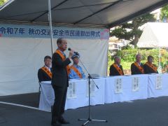 令和7年秋の交通安全市民運動出発式が開催され、大森雅夫岡山市長が出席しました。