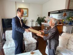 敬老の日に長寿をお祝いするため、大森雅夫岡山市長が長寿者祝賀訪問を行いました。