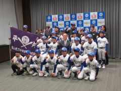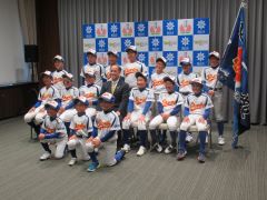 小学生が出場する軟式野球の全国大会に出場する岡山庭瀬シャークスの選手・関係者が、大森雅夫岡山市長を表敬訪問しました。