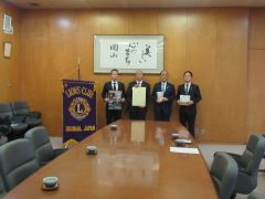 岡山ライオンズクラブから視覚障害者用点字カレンダーが寄贈され、大森雅夫岡山市長が受け取りました。