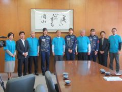 第31回全国ジュニアラグビーフットボール大会に出場する岡山県スクール代表の選手・関係者が、大森雅夫岡山市長を表敬訪問しました。