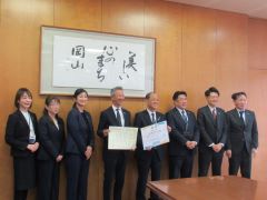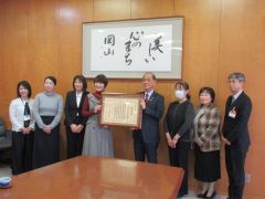 一般社団法人岡山市ひとり親家庭福祉会が、母子父子寡婦福祉団体に対する内閣府特命担当大臣感謝状の受賞報告のため、大森雅夫岡山市長を表敬訪問しました。