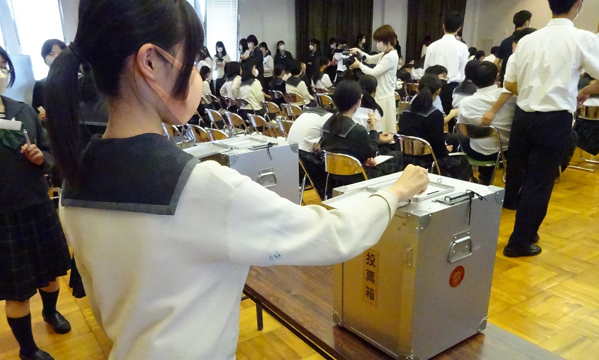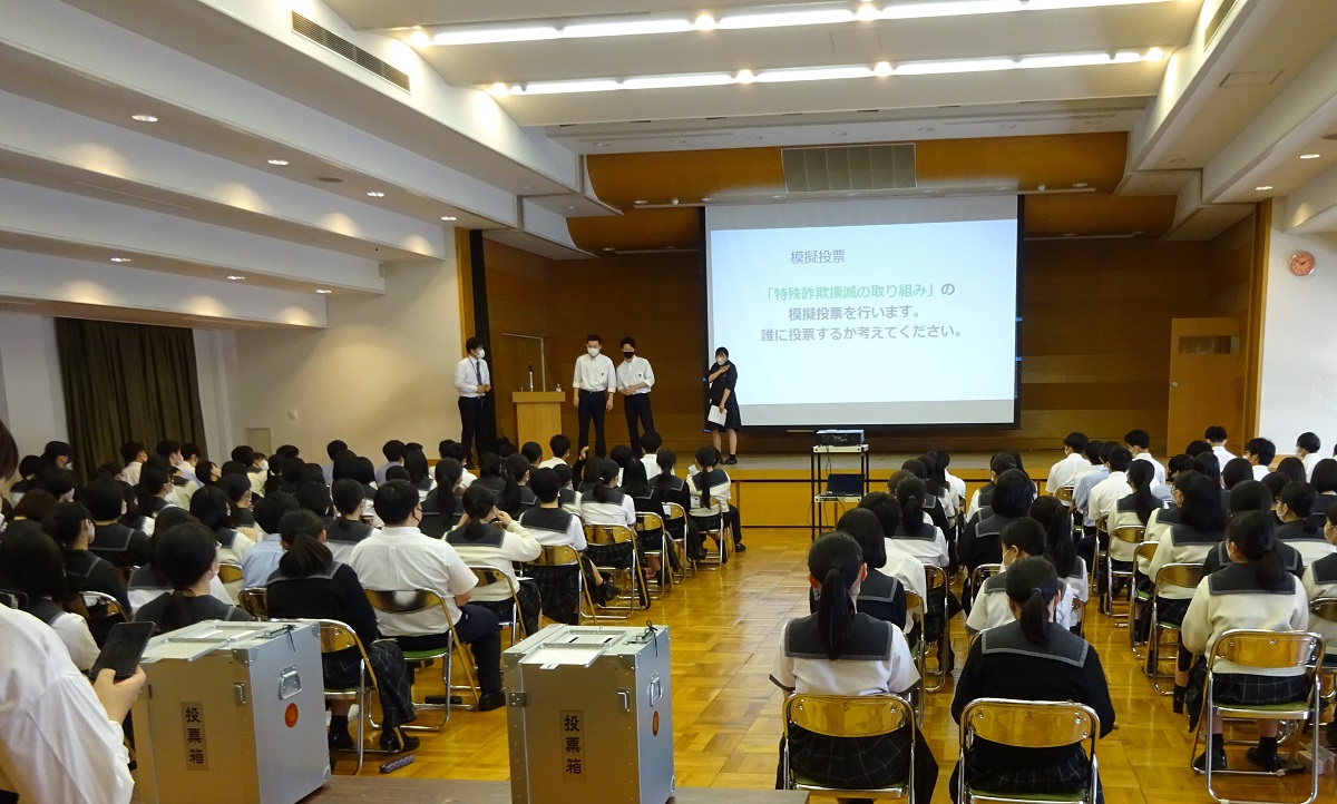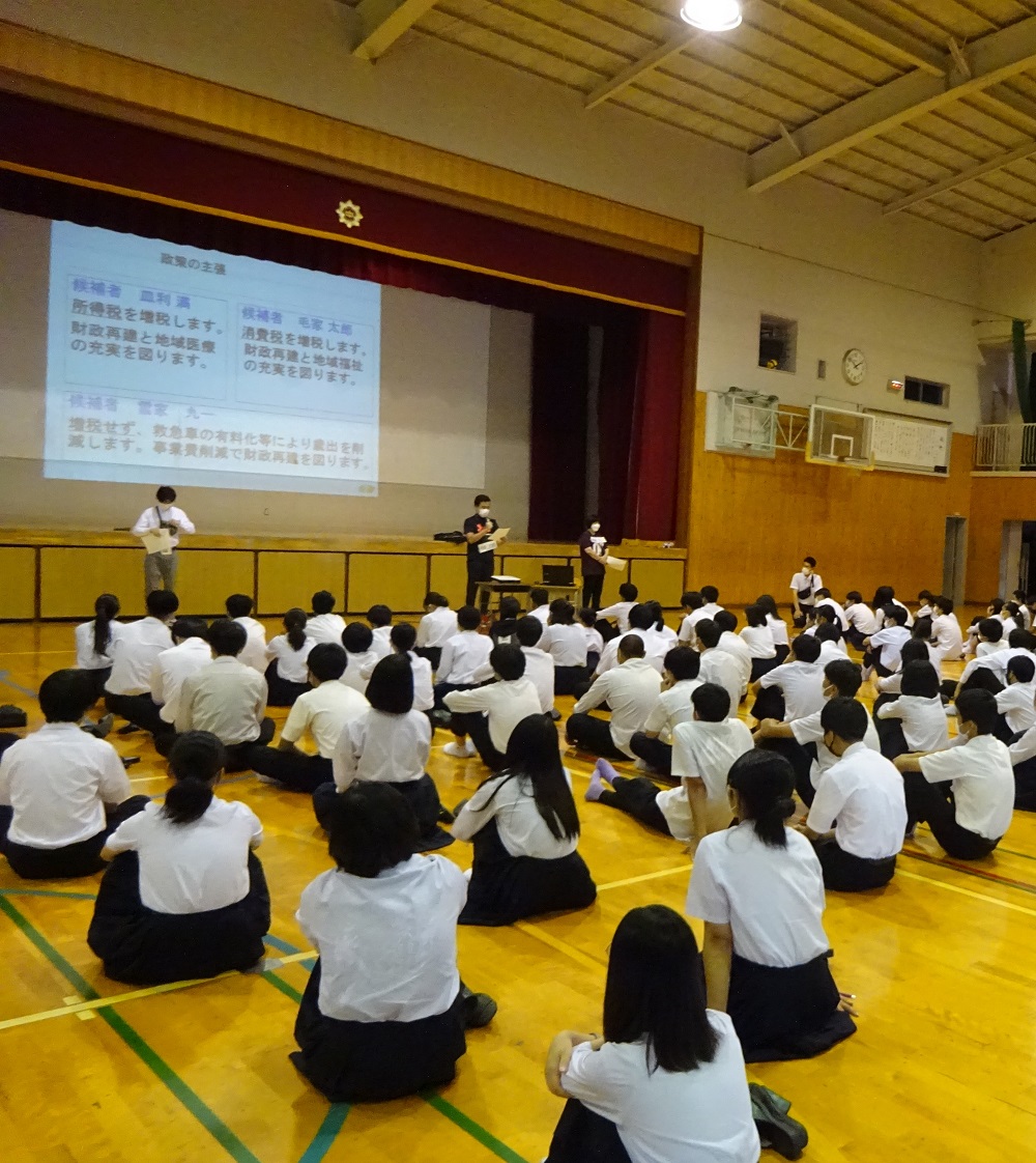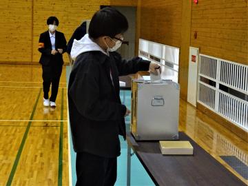 生徒のみなさんが候補者役となり、模擬投票も行いました。