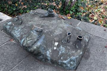 ←何者かによって切断されてしまったサンノゼ市の桃太郎像